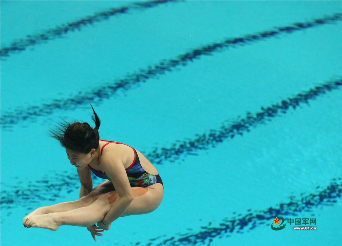8月28日,第十三届全运会女子跳水三米板决赛,在天津奥体中心游泳馆举行。图为解放军运动员黄小慧在比赛中。中国军网记者张雷摄影 中国军网天津8月28日电 记者欧阳浩、康哲报道:28日下午,第十三届全运会女子3米跳板决赛在天津奥林匹克中心游泳跳水馆举行。我军老将韦颖与广东选手陈艺文并列第4名,我军另一位选手黄小惠获得第6名。冠亚季军分别由里约奥运会冠军得主重庆选手施廷懋、广州亚运会冠军获得者河北选手王涵和广东选手吴春婷收入囊中。 比赛中,记者发现,当我军选手韦颖和黄小惠出场时,穿着体能作训服的观赛官兵更加使劲地挥舞着国旗为她们呐喊助威。 与在电视上收看比赛时有主持人或嘉宾解说词不同的是,现场观众只能靠着一双眼睛观赛,他们不仅仅是盯着选手的表现,还会随时关注现场设置的成绩显示屏,以便了解实时战况。 成绩体现了选手的个人实力,但体育精神有的不仅仅是输赢。为奖牌获得者喝彩的同时,也希望韦颖和黄小惠的伤病能早日康复,祝福我军健儿! 附全运会女子3米跳板决赛成绩(前六名) 第一名:施廷懋 409.20 第二名:王 涵 386.55 第三名:吴春婷 370.05 第四名:陈艺文 368.40(并列) 第四名:韦 颖 368.40(并列) 第六名:黄小惠 362.55 (摄影/中国军网记者张雷)