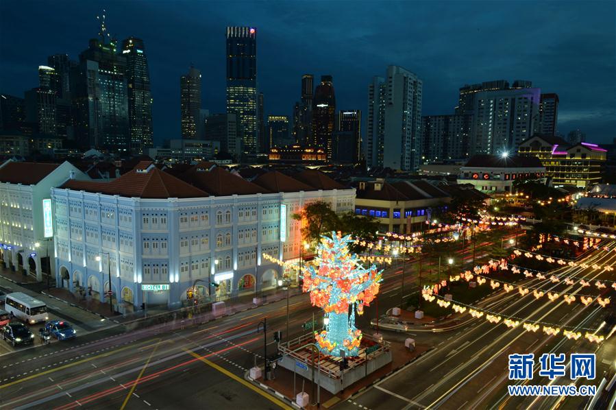 这是9月20日在新加坡唐人街牛车水拍摄的中秋节灯饰。 新华社发(邓智炜摄)