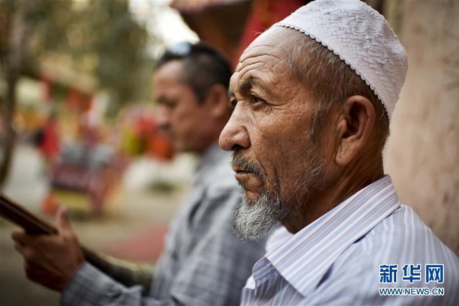 9月25日,在“坎土曼”巴扎里,一位居民在欣赏乐器“弹布尔”弹出的声音。 9月的新疆喀什秋高气爽,在这座城市的“坎土曼”巴扎(集市)里,每到傍晚时分,巴扎的节奏就逐渐变慢下来,当地居民享受着舒缓而又惬意的生活。 “坎土曼”巴扎主要以铁匠铺打制经营坎土曼等生产生活工具而得名,位于喀什老城区内。游客在“坎土曼”巴扎能看到传承了数百年的维吾尔族铁艺加工全过程。新华社记者 赵戈摄