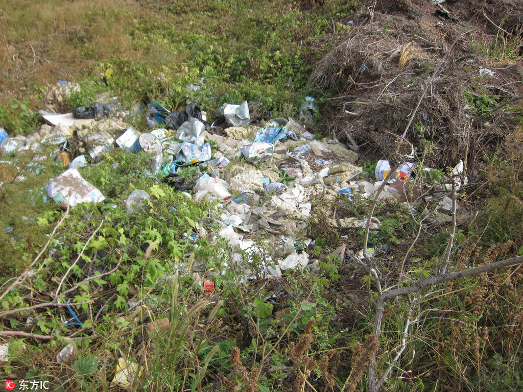 2017年9月28日,哈尔滨市江北太阳岛与滨洲铁路桥间有一片湿地,里面生长着芦苇等水生植物,景色很美。可是不知道谁在这里扔了许多生活垃圾和建筑垃圾,弄得当地污秽不堪。如不及时清理,将对太阳岛风景造成不良的影响。供图:成蔷/东方IC