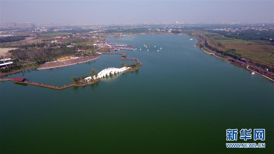 昆明池·七夕公园水面(9月28日摄)。当日,位于西安市西咸新区的陕西省斗门水库一期试验段暨昆明池·七夕公园开园。 新华社发(张博文 摄) 9月28日,游客在昆明池·七夕公园的“鹊桥”上拍照留念。 当日,位于西安市西咸新区的陕西省斗门水库一期试验段暨昆明池·七夕公园开园。新华社发(张博文 摄)