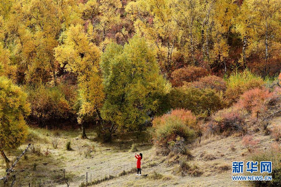 10月3日,游客在内蒙古巴彦淖尔市大桦背林区赏秋。金秋十月,内蒙古巴彦淖尔秋高气爽,地处巴彦淖尔东部的大桦背林区层林尽染,秋色绚丽,景色如画。 新华社发(支茂盛 摄) 10月3日,游客在内蒙古巴彦淖尔市大桦背林区赏秋。金秋十月,内蒙古巴彦淖尔秋高气爽,地处巴彦淖尔东部的大桦背林区层林尽染,秋色绚丽,景色如画。 新华社发(支茂盛 摄)
