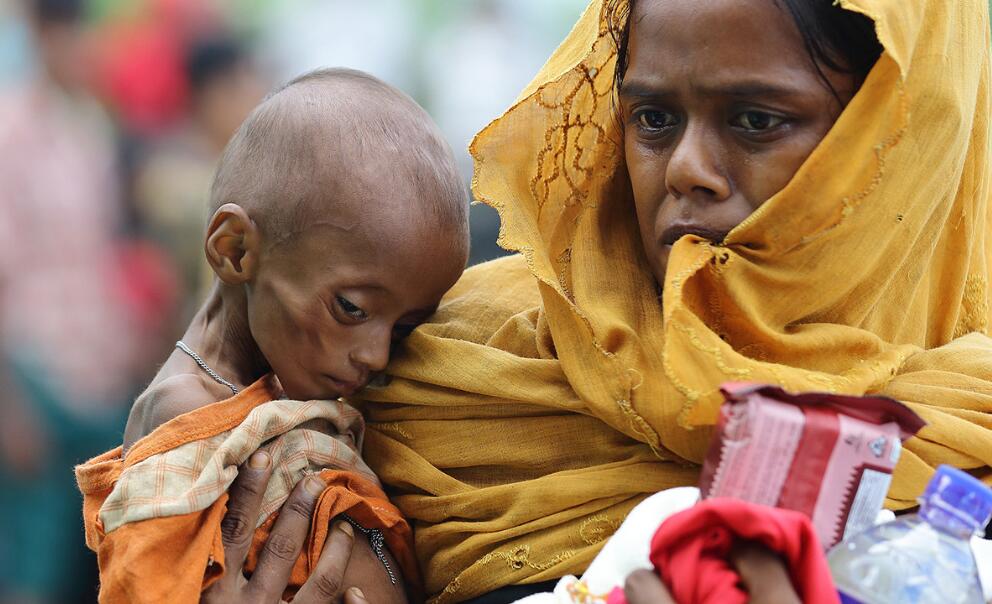 当地时间2017年10月2日,孟加拉国,自8月25日缅甸瑞开邦冲突以来,逃往孟加拉的罗兴亚人已达到约48万人,国际移民组织正在当地协调人道主义应急行动。这些逃难的罗兴亚人生活在难民营里,等待领取食物救济。Suhaimi Abdullah/Getty Images/视觉中国