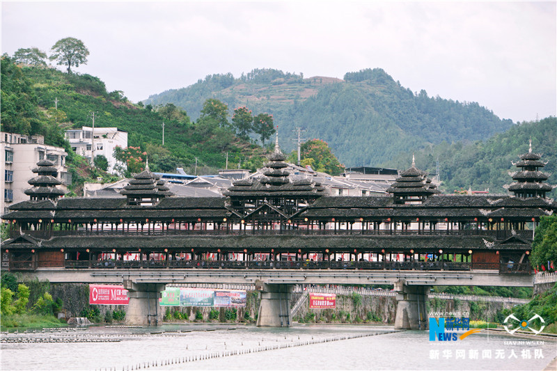 湖北宣恩侗族风雨桥又称花桥、文澜桥,是侗族建筑中最具特色的民间建筑之一。桥梁结构严谨,造型独特,极富民族气质。整座建筑不用一钉一铆和其它铁件,皆以质地耐力的杉木凿榫衔接,拔地而起。在湖北省恩施土家族苗族自治州,风雨桥既是交通要道,也是人们遮阳避雨、度夏纳凉的去处。新华网 欧阳小洁摄