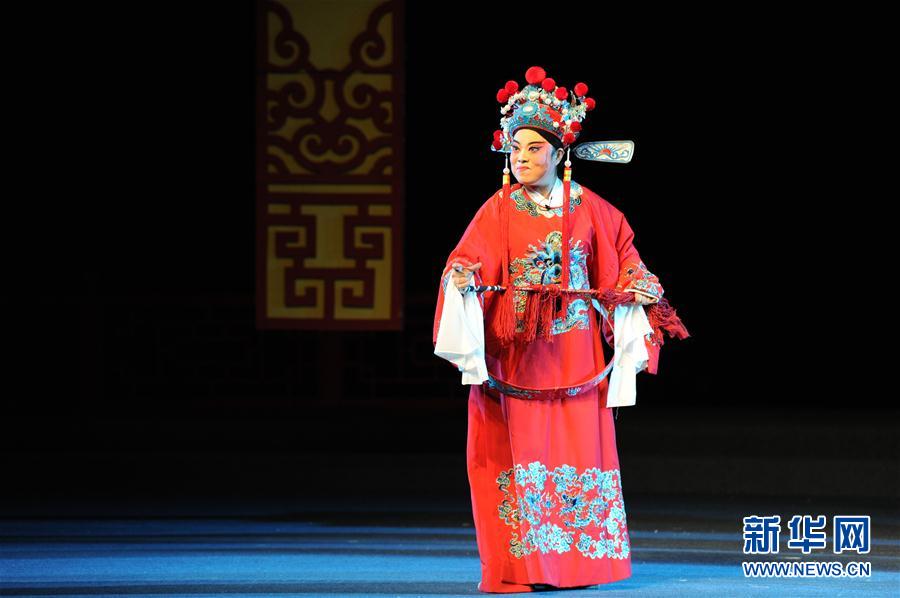 10月10日,陕西省富平县阿宫剧团的演员正在演出阿宫腔《王魁负义》。10月8日,中国秦腔优秀剧目会演在西安开启,来自陕西、浙江等9个省、自治区、直辖市的22个院团将进行24个剧目的演出。会演将持续至11月8日。新华社发(张博文 摄)