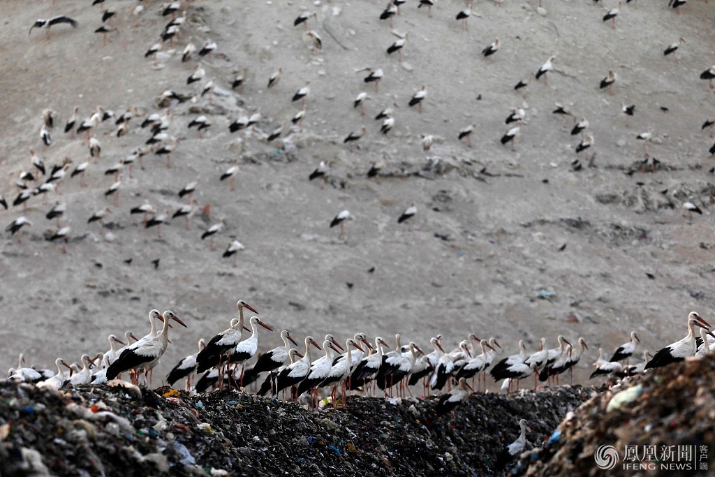 当地时间10月11日,约旦河谷。冬季来临之前,大批鸟类从欧洲迁徙到非洲。图为一大批鹳停留在约旦河谷。图:视觉中国 MENAHEM KAHANA/摄