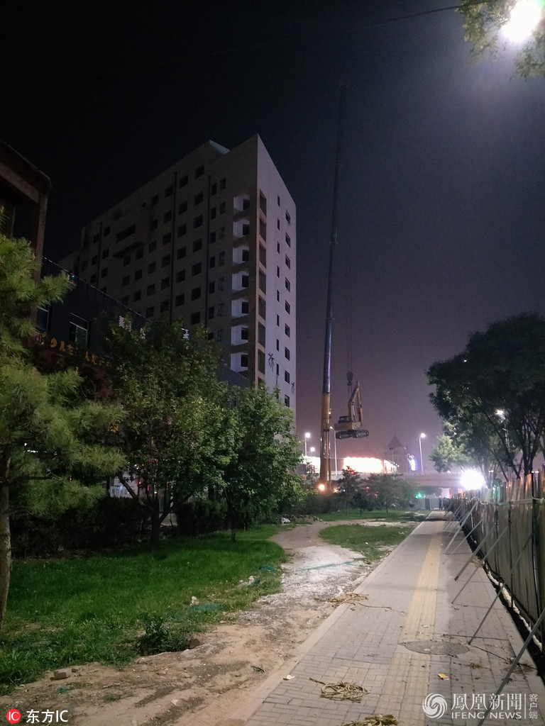 2017年10月10日,山西省晋中市榆次区迎宾路东侧,两台挖掘机在一栋8层高的建筑物上进行拆除作业,过往市民在感叹司机高超的驾驶技艺时,纷纷对“挖掘机是如何爬上楼顶”充满好奇,原来,挖掘机是被吊上去的。来源:东方IC