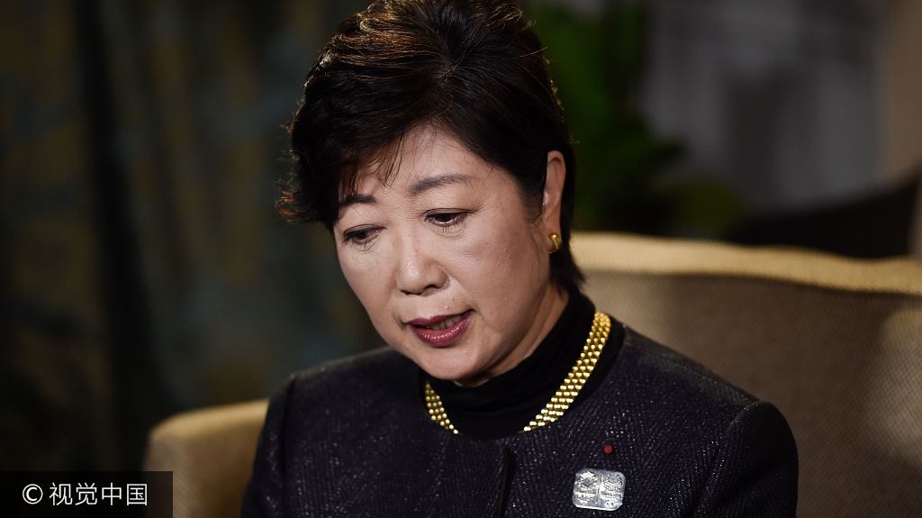 当地时间2017年10月22日,法国巴黎,东京都知事、“希望之党”党首小池百合子就日本众议院选举结果接受媒体采访。据日本大选出口民调显示,日本首相安倍晋三执政联盟在众议院选举中获得多数票而取胜,安倍晋三预计将连任日本首相。供图:STEPHANE DE SAKUTIN /视觉中国