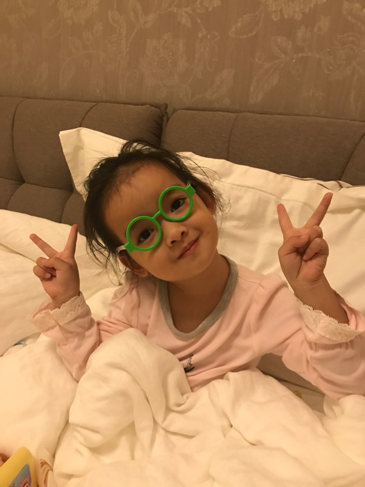 10月26日,演员聂远在微博晒了一组3岁女儿的近照,并写道:“臭美小大‘爷’。”照片中,小姑娘身穿粉色上衣,戴着绿色边框眼镜坐在床上,歪着个小脑袋,圆圆的脸蛋水汪汪的大眼睛,对着镜头比V卖萌,俏皮可爱。