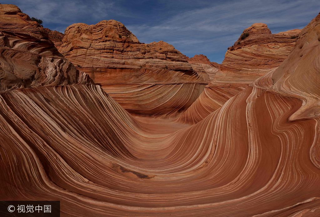 当地时间2017年10月30日,美国亚利桑那州佩吉,亚利桑那州北部朱红悬崖的帕利亚(Paria)峡谷,其砂岩上的纹路像波浪一样,所以这片地方叫做“The Wave”,即波浪,是一个由五彩缤纷的奇石组成的风景区。来源:MARK RALSTON /视觉中国