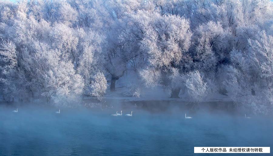 从那以后父亲开始义务保护这些可爱的水中仙子。经过23年的保护,现在天鹅数量从刚开始的一对到现在186只。韩亮/摄 (新华摄影独家授权发表 未经允许请勿转载)