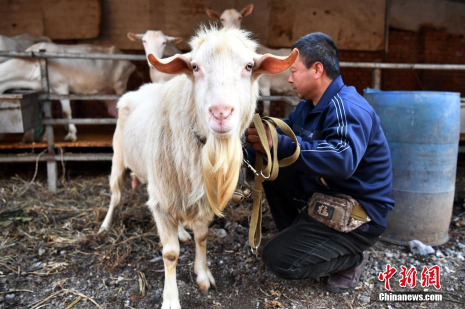 11月1日,河北石家庄南铜冶村赵彦宁的家中,他饲养了四年的一头公羊竟然能挤出奶水。据赵彦宁介绍,这只“妻妾成群”的种羊,主要用来给母羊配种,没想到现在竟然还能产奶。中新社记者 翟羽佳 摄