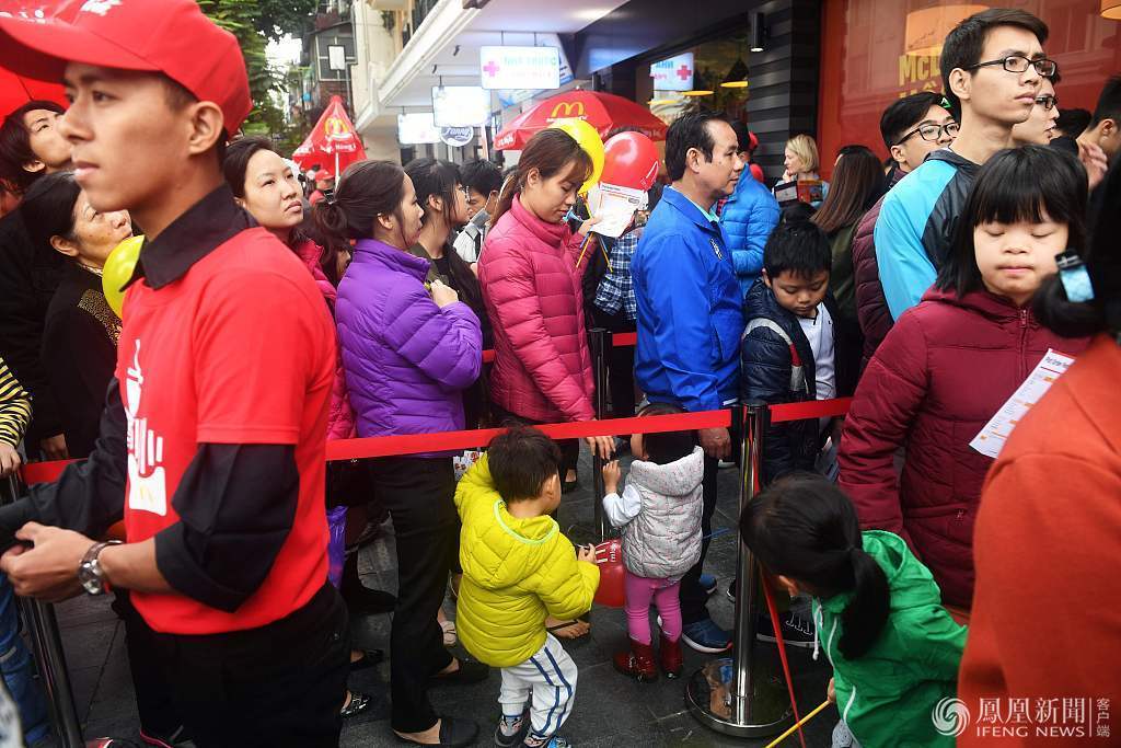 当地时间12月2日,越南河内,快餐业巨头麦当劳越南首都河内的首家分店开业,当地市民排队购买。图:视觉中国 HOANG DINH NAM/摄