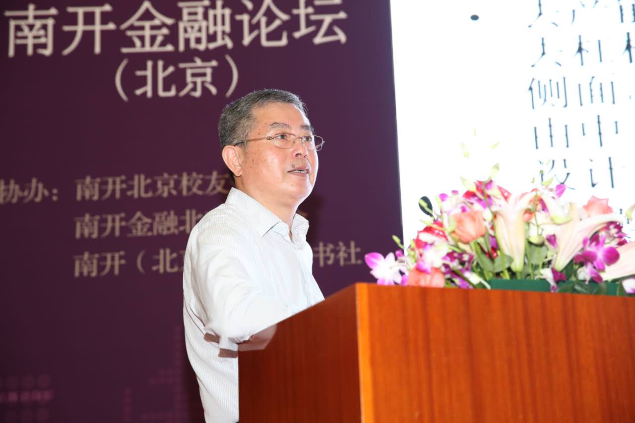 图为李扬在南开金融学院、南开金融教育基金会、南开金融校友联合会联合举办的学术论坛活动上发言