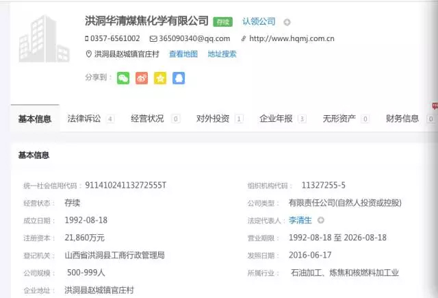 公司秘闻(ID:high3c)注意到,通报里面,涉及到一家位于山西的公司——洪洞华清煤焦化学有限公司。该公司位于山西省临汾市洪洞县赵城镇官庄村,集洗选、炼焦、化产于一体,主要产品有焦煤、焦油、粗苯等。