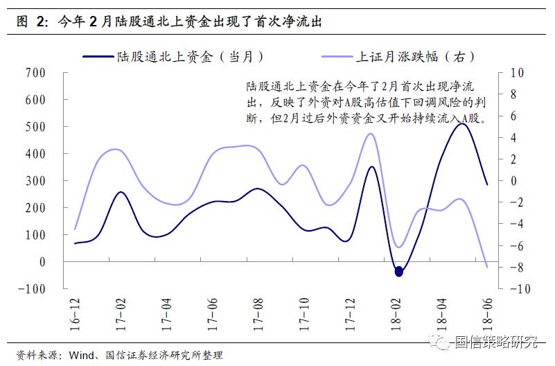 我们认为,年初市场的第一轮下跌主要是对内部风险因素的消化和调整,这些内部风险因素包括前期白马股的巨大涨幅、1月底时部分上市公司业绩地雷频发,在这些因素下,2月份我们看到了北上资金月度的首次净流出,而同时2月初时美股连续大跌,进一步催化了A股在1月底2月初出现的急速下跌。