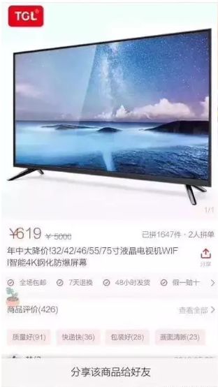 拼多多用了“拼团”、“砍价”模式,和当初百团大战的时候美团的玩法如出一辙。只不过美团当时吸引的是年轻人,拼多多的低价拼团吸引的是广场舞大妈和三、四、五线城市的女性群体。