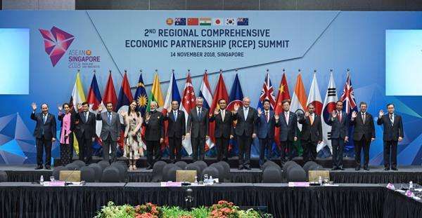 中日韩及东盟等16国参加的东亚区域全面经济伙伴关系协定(RCEP)首脑会议11月14日在新加坡举行。会议放弃了2018年内达成实质上妥协的目标。这是由于在关税等领域未能弥合分歧。会议确认了将继续谈判,发表的联合声明中写进“决心在2019年达成妥协”。据日本共同社11月15日报道,声明指出,2018年的谈判“取得了实质性进展”,处于达成妥协的最终阶段。关于陷入僵局的包括削减关税的市场准入谈判,强调进展称“迎来有望谈妥的阶段”。然而声明认为,有必要消除剩下的分歧,提出今后探讨对贸易自由化程度等参加国之间不同的情况做到“特别顾及”。