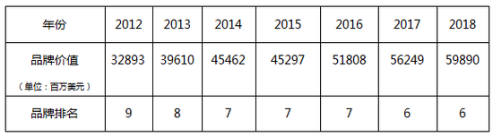 在品牌咨询公司Interbrand发布的“2018全球最佳品牌”榜单中,三星电子在全球品牌排行榜中名列第六位,连续第七年进入世界品牌前十强。