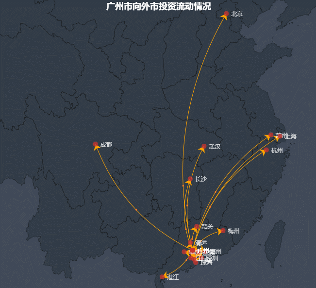 图广州市制造业企业对外投资前20城市分布