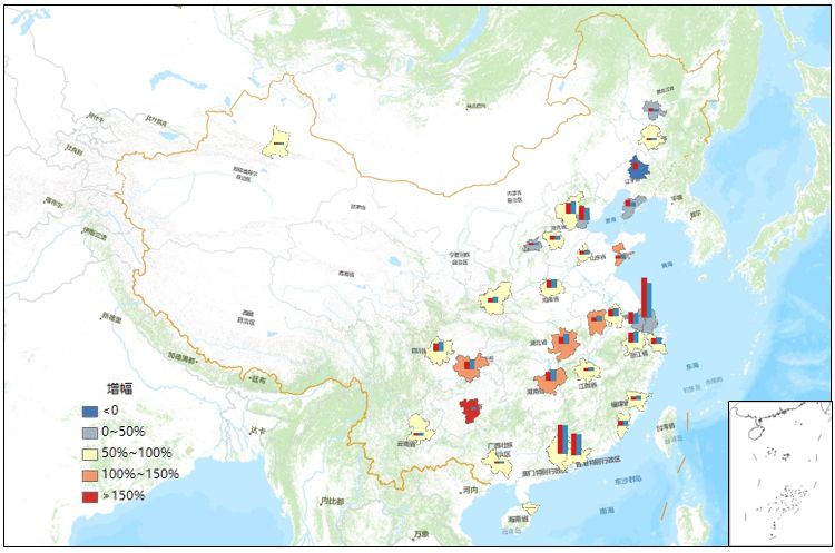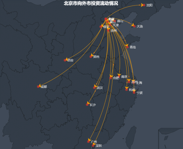 和上海类似,广州和深圳的对外投资也主要集中在周边城市,如佛山、东莞、惠州等地。可以看出,相比京津冀地区,长三角、珠三角区域之间的联系更强,协同发展水平更高。