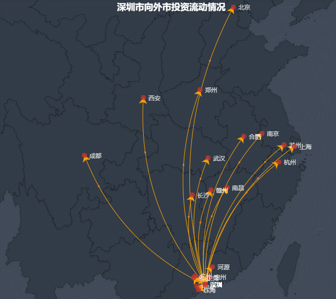 图深圳市制造业企业对外投资前20城市分布