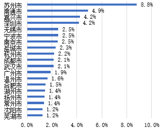 图上海市制造业企业对外投资前20城市
