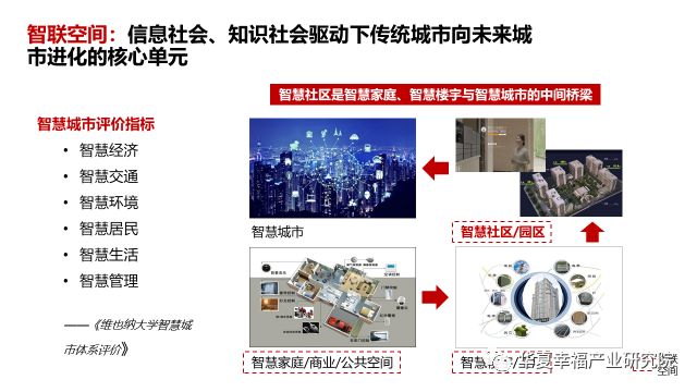 智联空间是城市进化的直观体现和未来智慧城市的核心单元,其主要形态包括智慧家庭、智慧楼宇和智慧社区。再进一步,是智慧城市。因此,智慧社区产业,应该是一个覆盖从小到大的各类智联空间的广义概念。