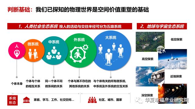 研判空间价值的“重塑“,首先要看重塑的基础是什么——我们自身及我们所认知的物理世界,包括人类社会生态系统和地球与宇宙生态系统,正是空间价值重塑的基础。
