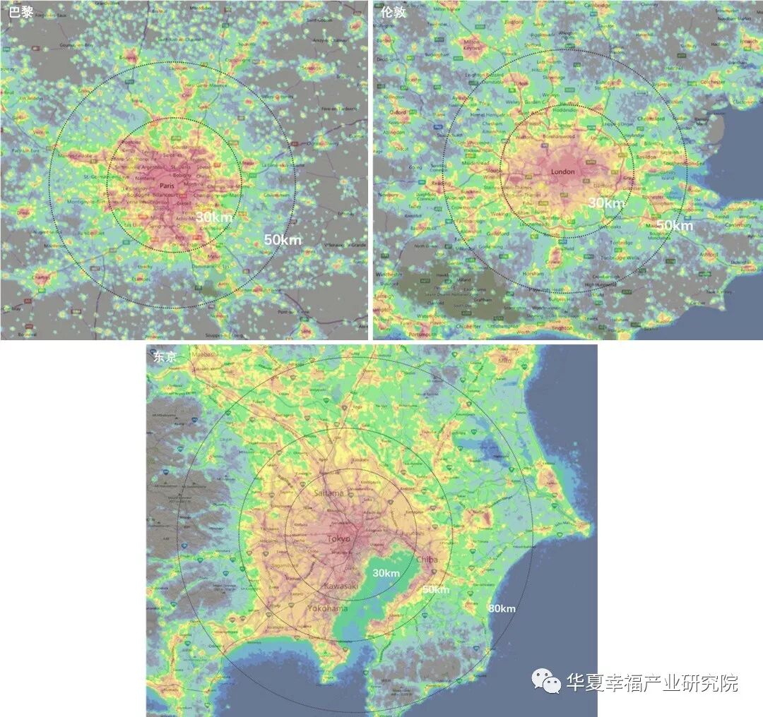 巴黎、伦敦、东京都市圈空间范围分布