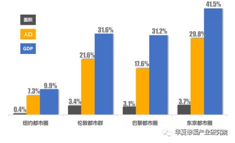 国际四大都市圈面积、人口与GDP占全国的比例