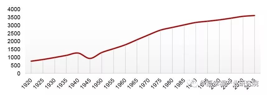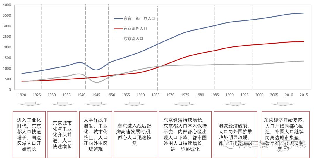 图1 1920-2015年东京都市圈人口发展历程(万人)