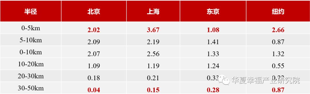 表1 2015年北京、上海、东京、纽约都市圈人口密度圈层分布(单位:万人/平方公里)