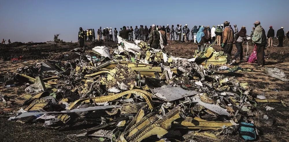 在人们仰望这架空中雄鹰起飞后六分钟的8时44分,这个注册号为ET-AVJ的B-737-800MAX型飞机,从雷达上消失,随后坠毁在距离埃塞俄比亚首都50公里处的Bishoftu镇,飞机损毁,机体碎裂成无数个碎片,散落在那个从天空上看下去像巨大调色板的旷野上,和飞机遇难人员的衣物混杂在一起,提醒着人们刚刚发生的悲剧。