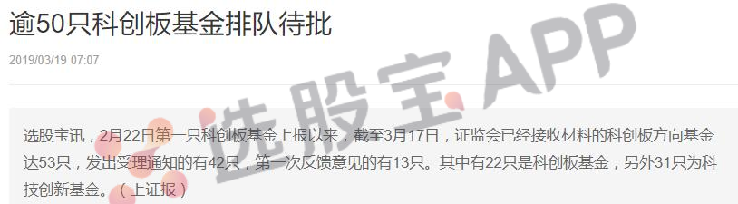 据媒体报道,截至3月17日,已有31家基金公司的53只基金产品在证监会排队待批,其中,已经反馈第一次意见的达13只,证监会发出受理通知的有42只。
