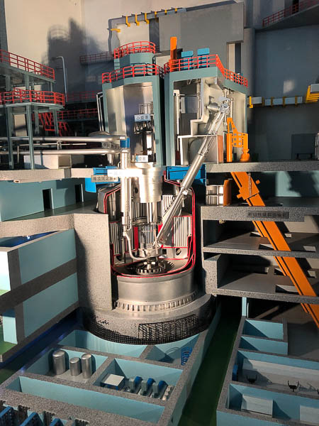 中国实验快堆(CEFR)的全称是“钠冷快中子增殖反应堆”。在实验快堆一楼大厅里,记者见到了一座快堆的模型。