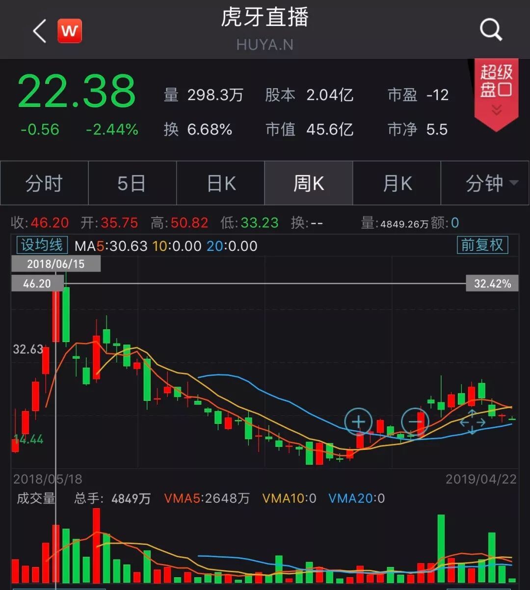 最终虎牙IPO定价12美元,据此估值升至30亿美元,约合人民币200亿元。2018年5月11日,虎牙成为“国内游戏直播第一股”,开盘报15.50美元,首日股价大涨近34%。一个月后虎牙创下上市以来新高50.82美元,市值达到近100亿美元。