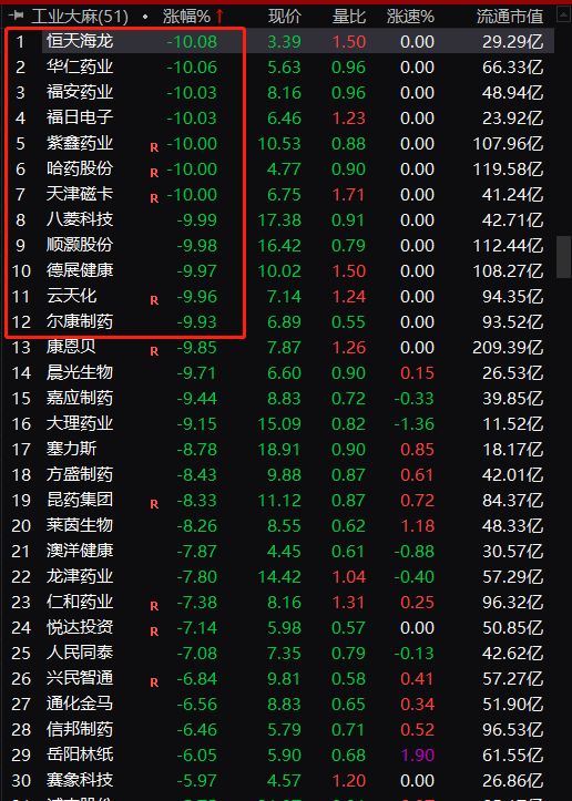 今天杀跌惨烈,主要在于各类题材股全面崩塌。工业大麻、氢能源、石墨烯等概念掀起跌停潮。仅工业大麻概念就有12只个股跌停。