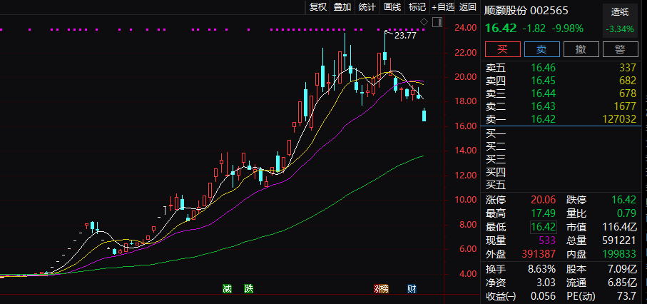 工业大麻龙头股顺灏股份,今日也轰然倒下跌停,近日高位下来跌幅超过30%。