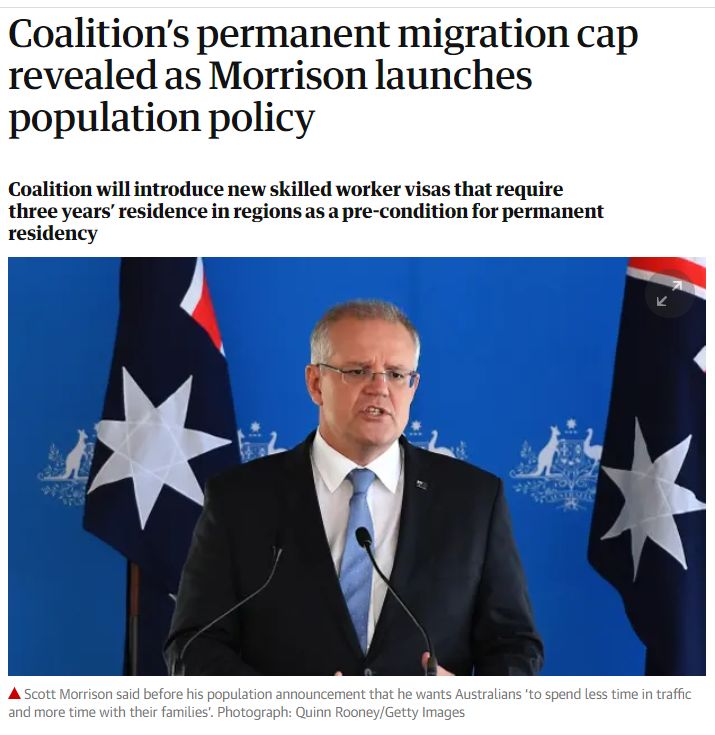 据《卫报》3月报道,澳大利亚将在未来四年内大幅削减移民数量,每年绿卡配额从原来的19万下调到16万。