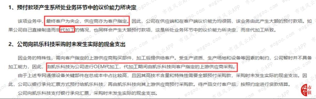 在澄清解释中,公司提及这类专网通信设备关键部件在总成本中占比较高,而且具有高技术含量和特殊性,对于这类具有技术含量和特殊性的重要产品,公司全权交给外部企业去生产加工,而且全额预付。