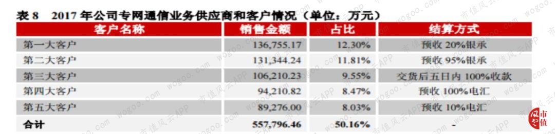 风云君在凯乐科技的公告中找到其2017年专网通信业务的客户情况:在凯乐科技的专网通信业务前五大客户中,并无以银承结算,100%预收的客户,而且结合亨通光电2016年年报预付余额1.96亿来看,2017年凯乐科技专网通信业务前五大客户中并无亨通光电。