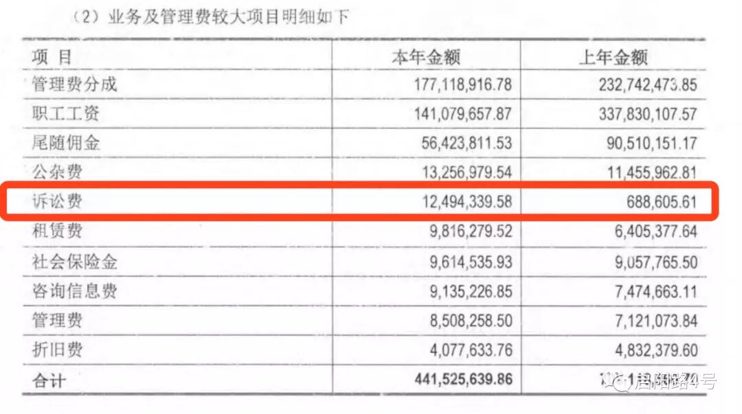 图注:2018年中泰资管财报,诉讼费翻了18倍