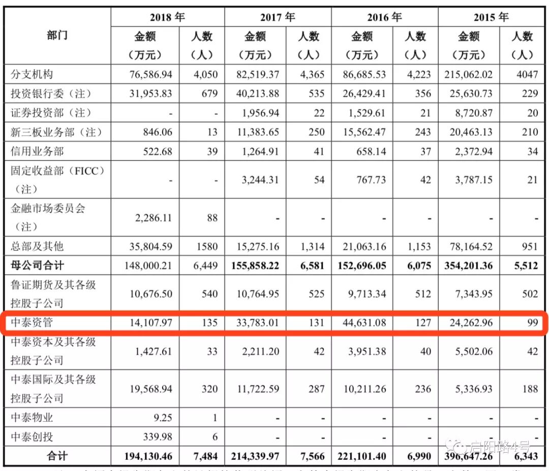 招股书中披露了中泰证券不同业务线的员工收入水平:投行业务人均年收入47万,信用业务人均年收入13万,中泰资管的人均收入高达104.5万,是唯一一个人均年收入过百万的业务部门。