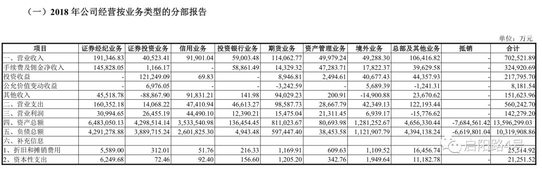 图注:2018年中泰证券各个经营业务业绩(来源:招股书)