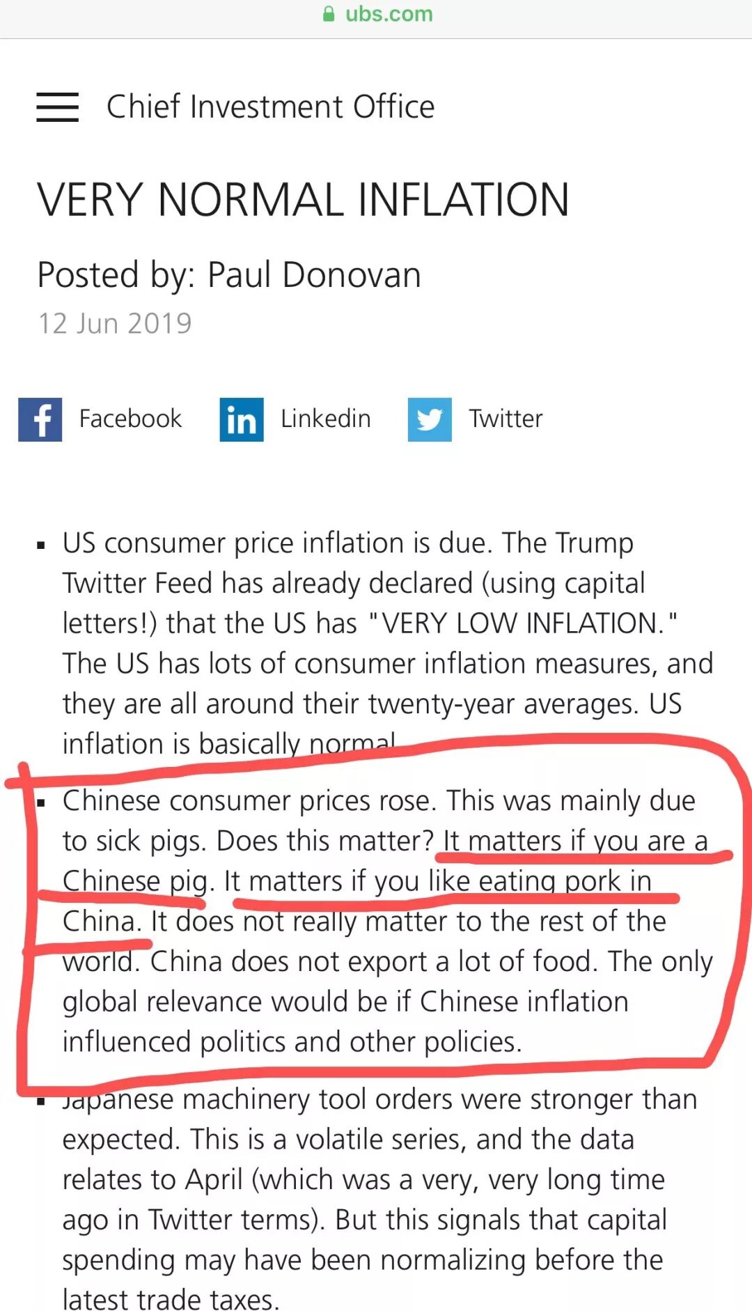 比如今天要说到的这位瑞银全球财富管理首席经济学家Paul Donovan先生,就在其最近(6月12日)发表在公司网站上的报告中说出了这样的话: