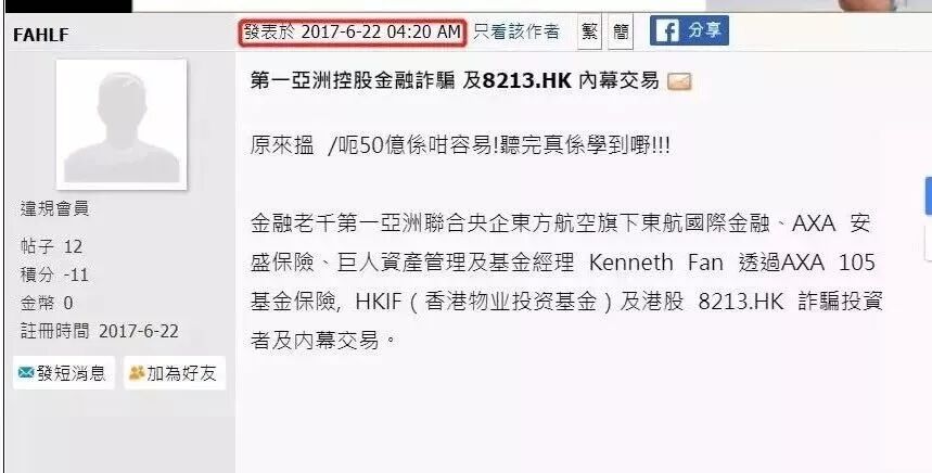 不仅2017年6月就有人在论坛爆料说第一亚洲控股涉嫌金融诈骗: