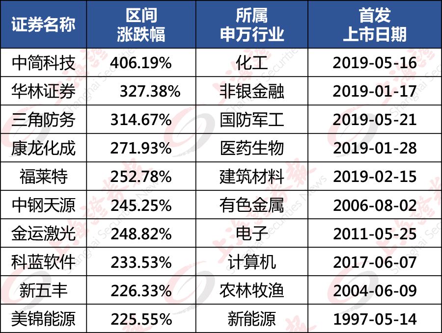 从上榜的个股名单上可以看出,排名前十的个股,涨幅均超过200%。