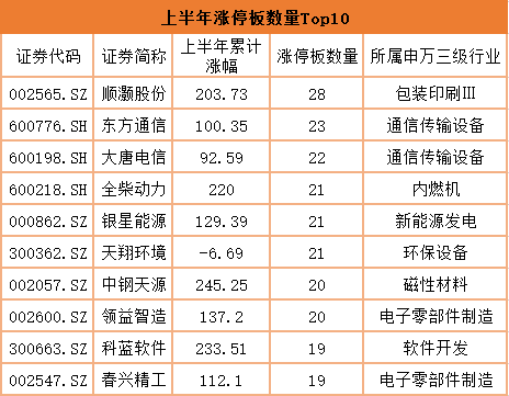 此外,大唐电信、全柴动力、银星能源、天翔环境、中钢天源、领益智造等个股也因半年内收获20多个涨停板而成“最强”牛股。综合来看,这些股票多为热点板块的龙头股。