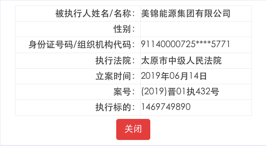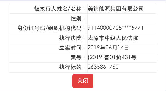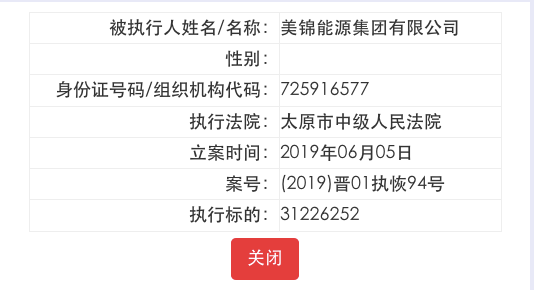 每经小编(微信号:nbdnews)在中国执行信息公开网查询到,今年6月以来,美锦集团三次被太原市中级人民法院列为被执行人。